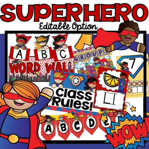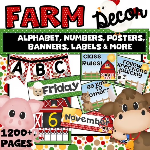 I have decorated using specific themes life farm, camping, ocean, retro and superheroes, as well as, basic color themes with brights or black and white polka dots. I have created printable decor sets that can be used in your classroom with so much variety that you will not need any other set.